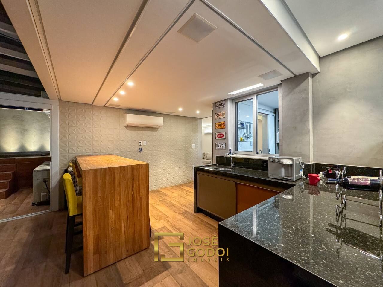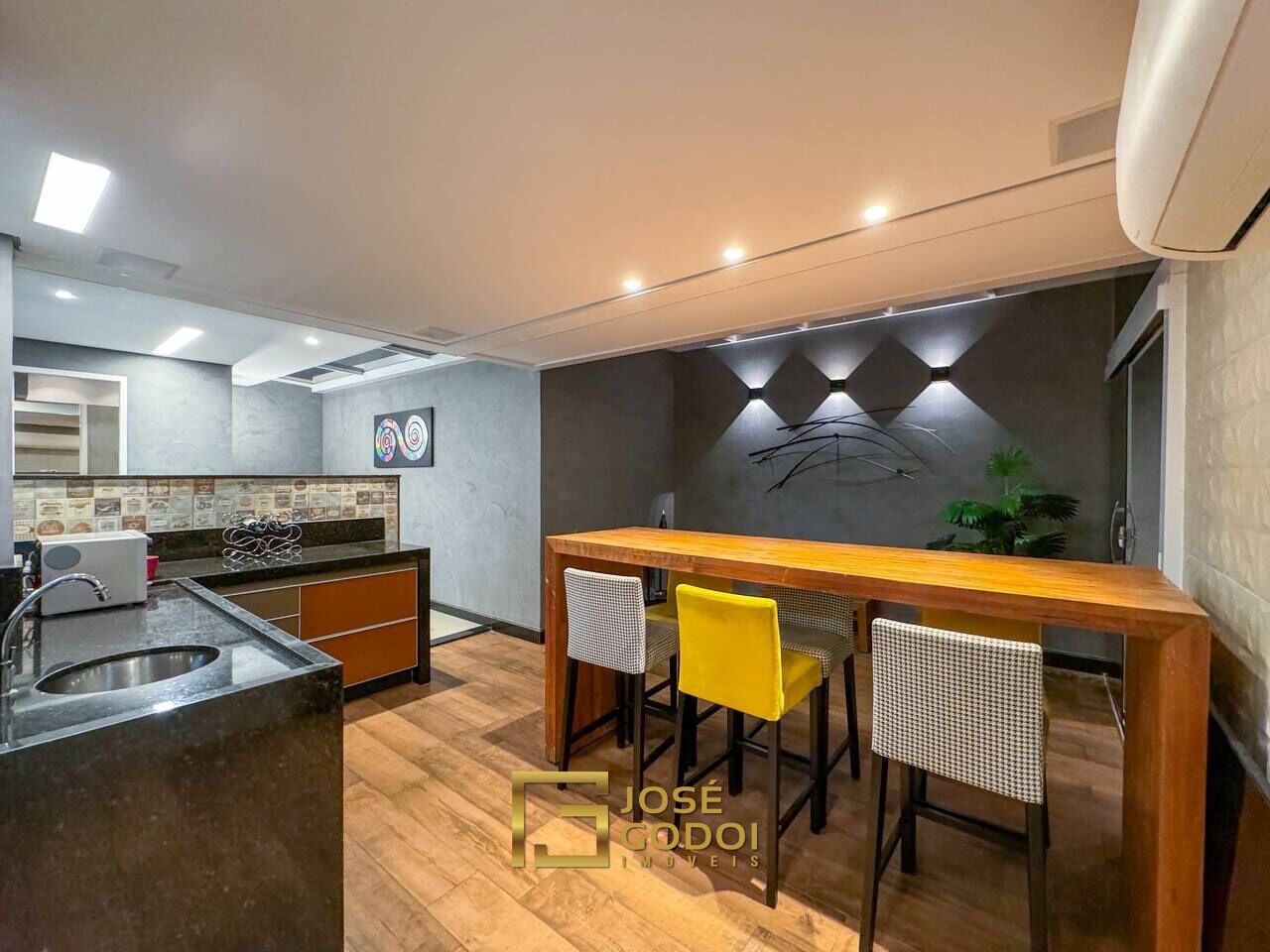 Sala grande com painéis, ar condicionado, teto rebaixado, iluminação e som embutidos no gesso, piso em porcelanato diferenciado e com placas grandes, cozinha integrada com bancada grande em granito e toda montada com armários, despensa, 3 quartos sendo 1 suíte, todos os quartos montados com armários.