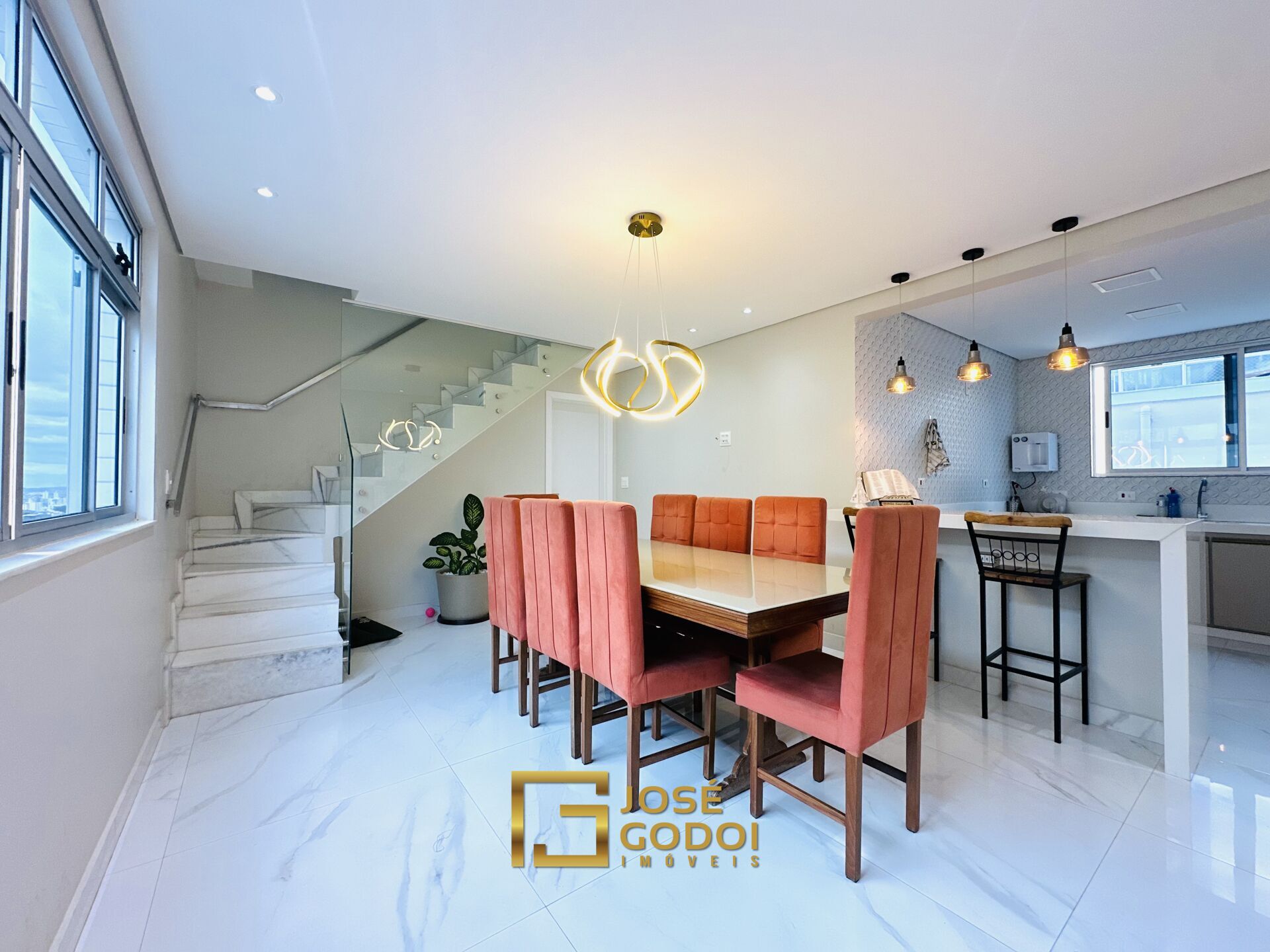 • Acabamento de altíssimo padrão: teto rebaixado em gesso, piso em porcelanato e cozinha americana espaçosa;
