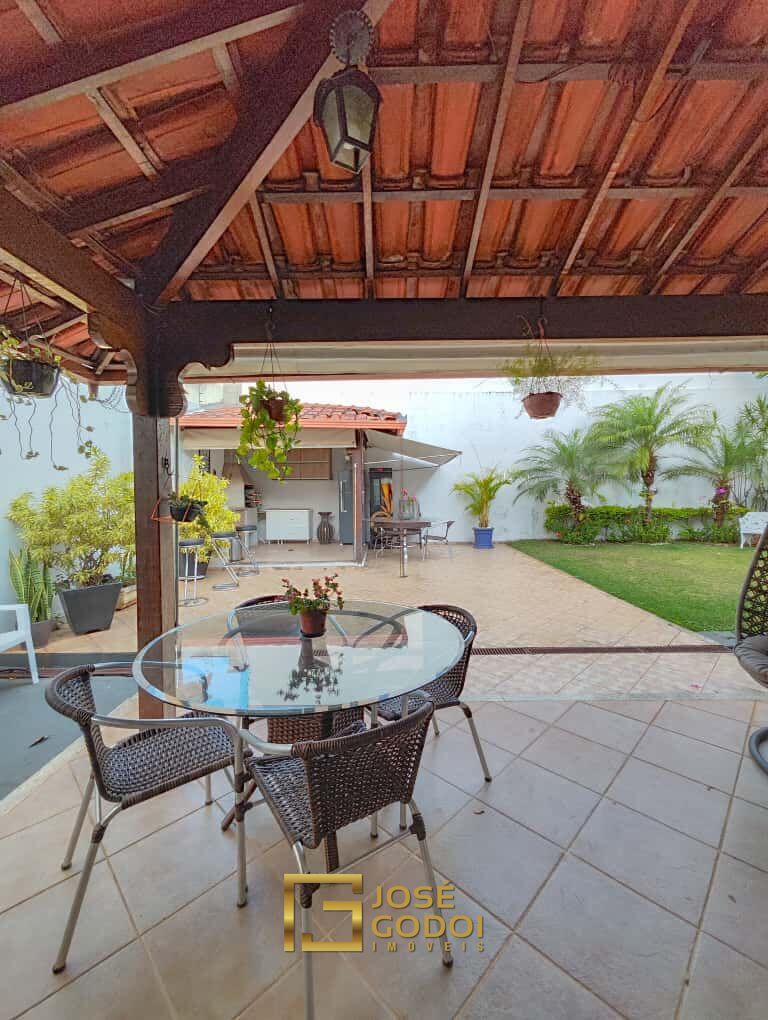 2 salas, 1 escritório grande, cozinha montada com armários, 5 quartos sendo 2 suítes e todos os quartos montados com armários, rouparia, banheiro social, quarto de despejo, área de serviço grande, área externa com espaço gourmet montado com churrasqueira, e área gramada, 4 vagas de garagem e quarto de despejo.